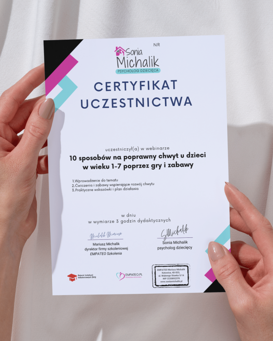 Czy wiesz, że prawidłowy chwyt ma kluczowe znaczenie dla rozwoju motoryki małej i późniejszej nauki pisania? Ten webinar to praktyczny przewodnik, który pomoże Ci wspierać dzieci w wieku 1–7 lat w rozwijaniu sprawności dłoni i palców poprzez zabawę. Otrzymasz zestaw skutecznych i angażujących ćwiczeń, które można łatwo wprowadzić w domu, przedszkolu czy terapii.